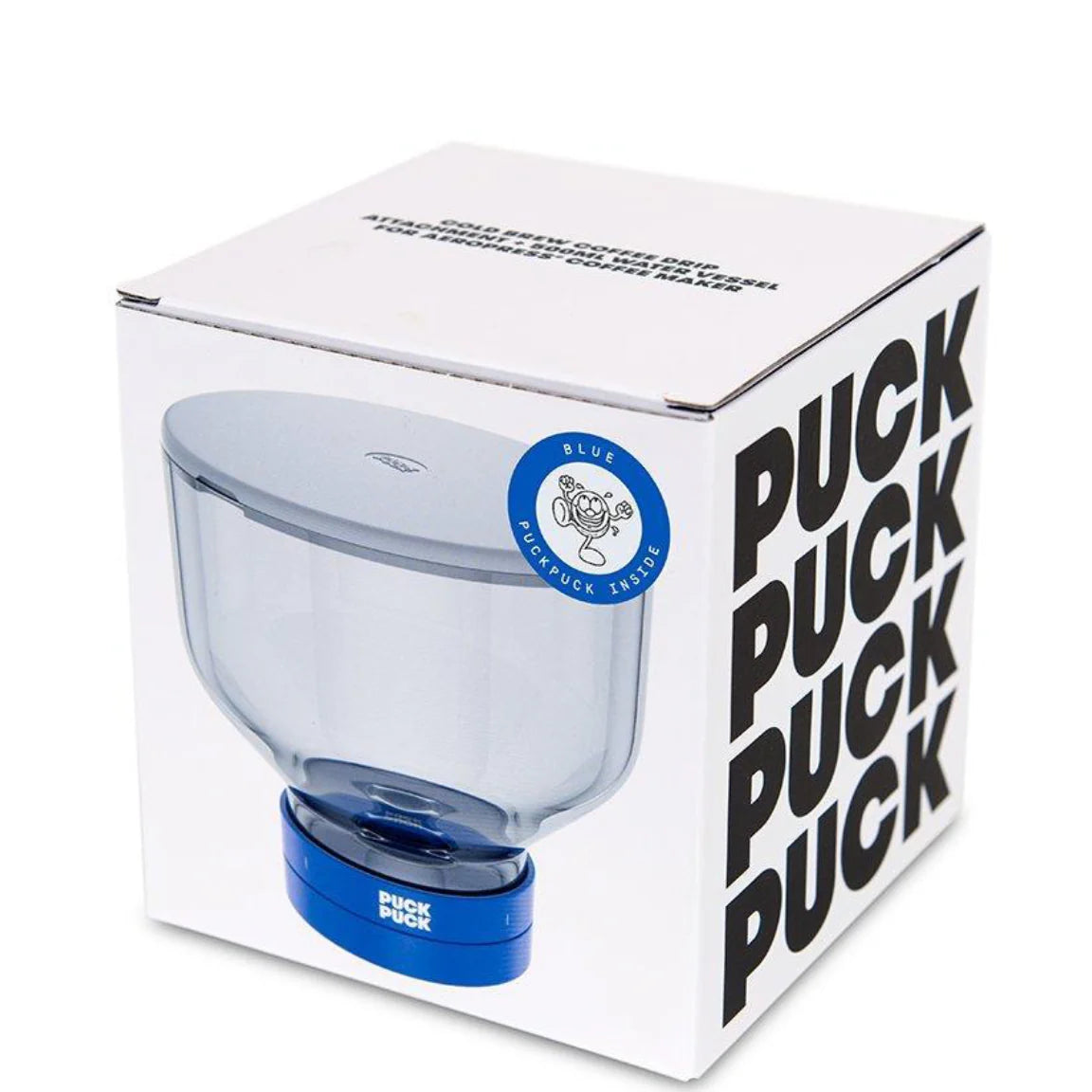 PUCK PUCK AeroPress attachment is a compact device that transforms your AeroPress into a cold brew drip system. It delivers smooth, balanced cold brew coffee by controlling the water flow with an adjustable drip valve. Its universal screw thread fits most standard water bottles, making it perfect for brewing on the go.